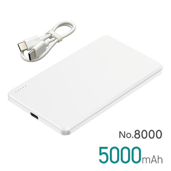 No.8000 準固体モバイルバッテリー 5000mAh カラー:ホワイト(安全性が高い準固体電池を採用/長寿命・軽い・薄い・安全で安心)