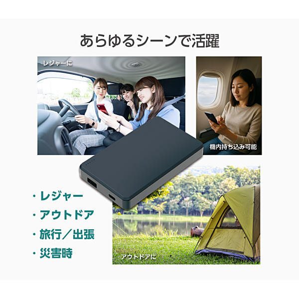 No.8001 準固体モバイルバッテリー 5000mAh カラー:ブラック(安全性が高い準固体電池を採用/長寿命・軽い・薄い・安全で安心)