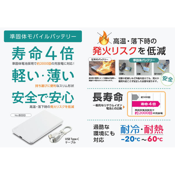 ●安全性が高い準固体電池を採用!長寿命・軽い・薄い・安全で安心!
