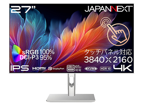 「27インチ IPSパネル搭載 10点マルチタッチ対応 4K(3840x2160)解像度 ホワイトカラー液晶モニター HDMI DP USB-C(最大65W給電) sRGB:100% DCI-P3:95% HDR KVM 4辺フレームレス フォルダブルスタンド搭載 ケーブル同梱(ホワイト) 【2年保証】」
