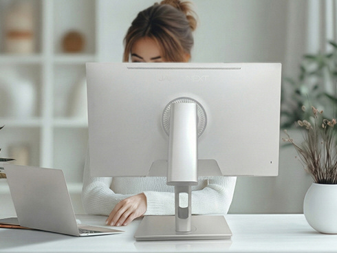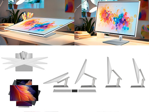 ■画面を寝かせてタッチ操作も可能なフォルダブルスタンド搭載。滑らかな可動域で、デザイン性と使いやすさを両立し、最適なポジションに簡単に調整できます。