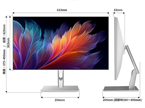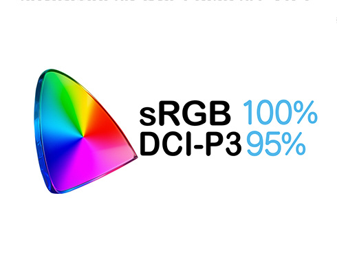 ■最大輝度350cd/m2の液晶パネルは、sRGB:100%、DCI-P3:95%の広色域に対応し、動画や写真も色鮮やかに美しく表示します。