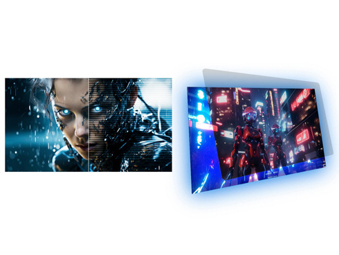 ■4辺フレームレスデザインを採用し、浮かび上がるようにコンテンツを鮮やかに映し出します。