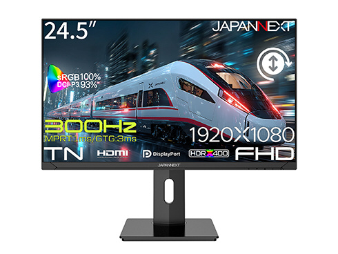 「24.5インチ TNパネル搭載 300Hz/1ms(MPRT)対応 フルHD(1920x1080)解像度 ゲーミングモニター HDMI DP sRGB:100% DCI-P3:93% HDR400相当 PS5 フルHD:120Hz接続 高さ調整 ピボット(縦回転)対応 【2年保証】」