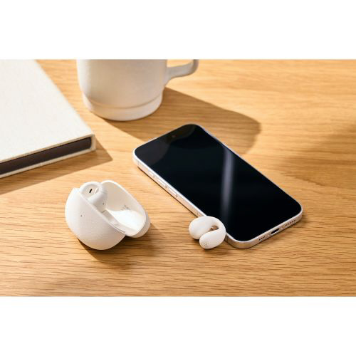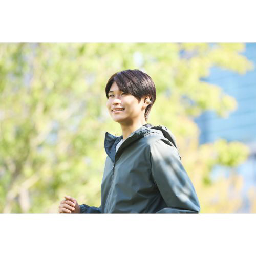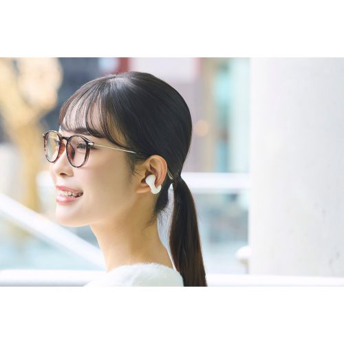 イヤーカフ形状で周囲の音も聞こえる、オープンイヤー型の完全ワイヤレスイヤホンです。耳をふさがない“ながら聴き”で、さまざまなシーンにおいて音楽や動画を高音質かつ快適に楽しめます。しなやかに動く柔らかブリッジが耳にやさしくフィットし、高い装着感を実現します。汗や雨などの水滴にも安心のIPX4の生活防水に対応しています。