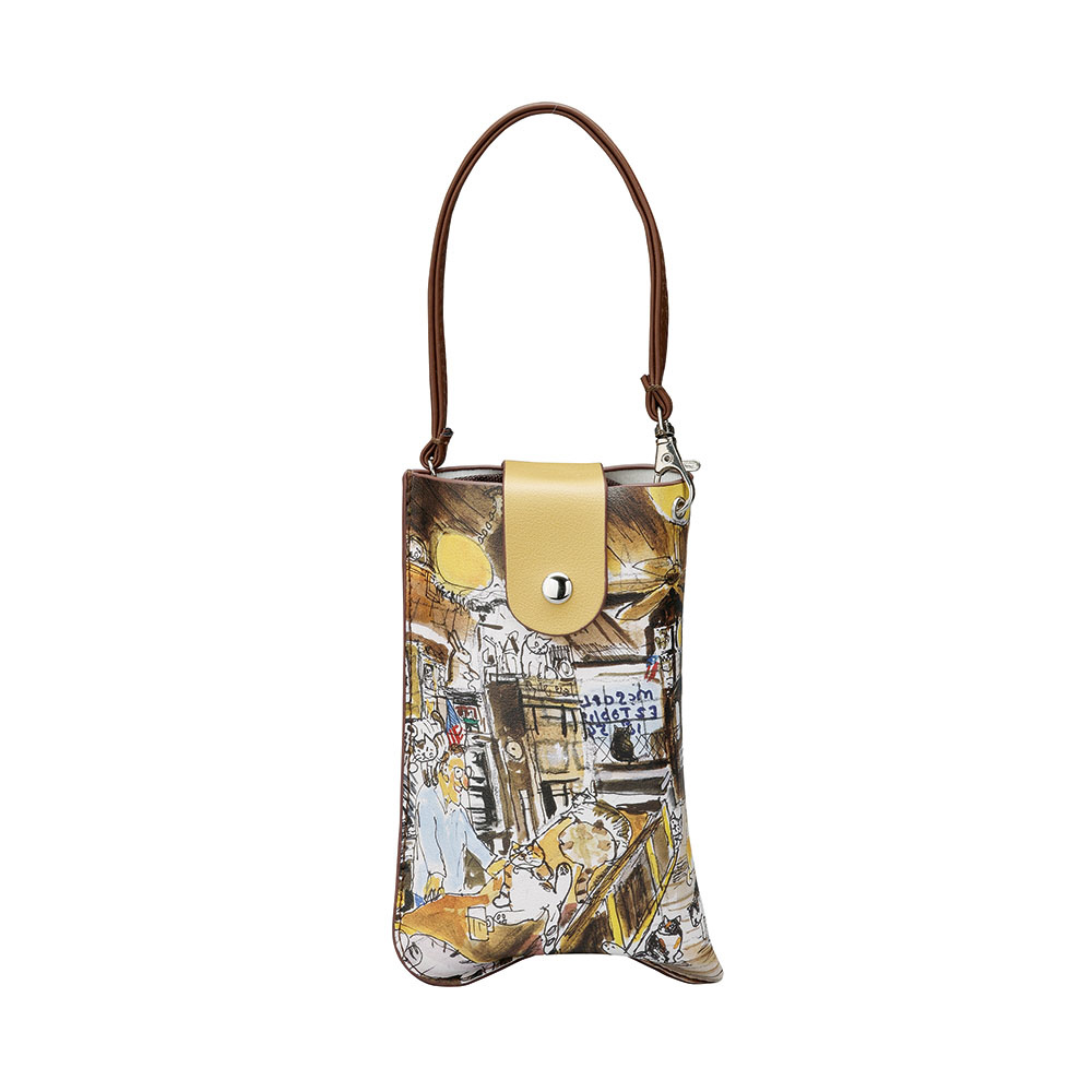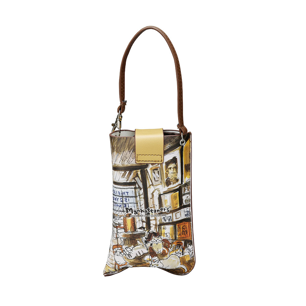 猫ちゃんが可愛く描かれている人気のマンハッタナーズのフラットメガネケース。出し入れ簡単でカバンにかけられるケースです。