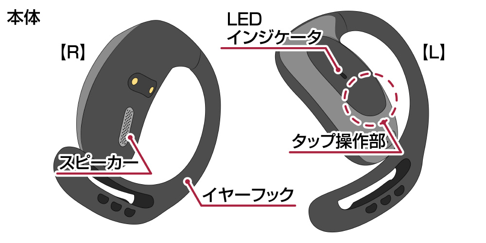 LまたはRどちらもハンズフリーとして片耳使いが可能。※使用しない片側は充電ケースに入れてください。