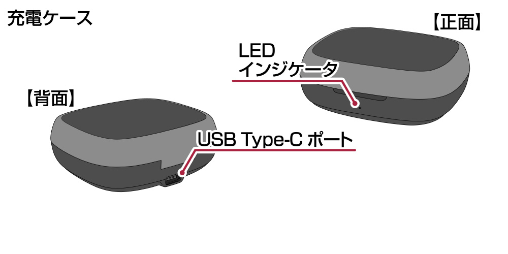 タッチ操作マグネット搭載でピタッと収納できる充電ケース。本体を充電ケースから取り出すとLとRが自動接続。
