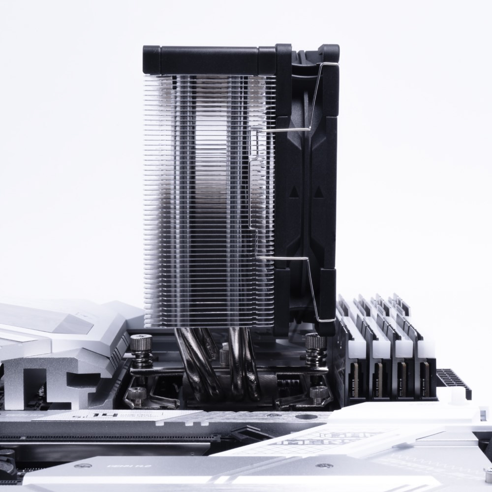 54mmと幅の狭いナロータイプのフィン設計により、大型ヒートスプレッダ搭載メモリとの干渉を回避。
