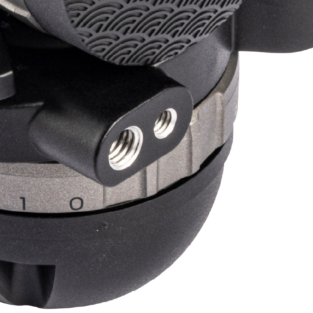 過酷な使用環境においても安心して永くお使い頂けるよう、各部品の材質変更や内部構造の再設計を行いました。経年使用時の耐久性が向上し、スライドプレートの固定力やパンとティルトのロック力も大幅アップしました。さらに、各ドラ グダイヤルのクリック感も増し、カウンターバランスつまみとドラグダイヤルに印字を加えた事で視認性も改善しました。