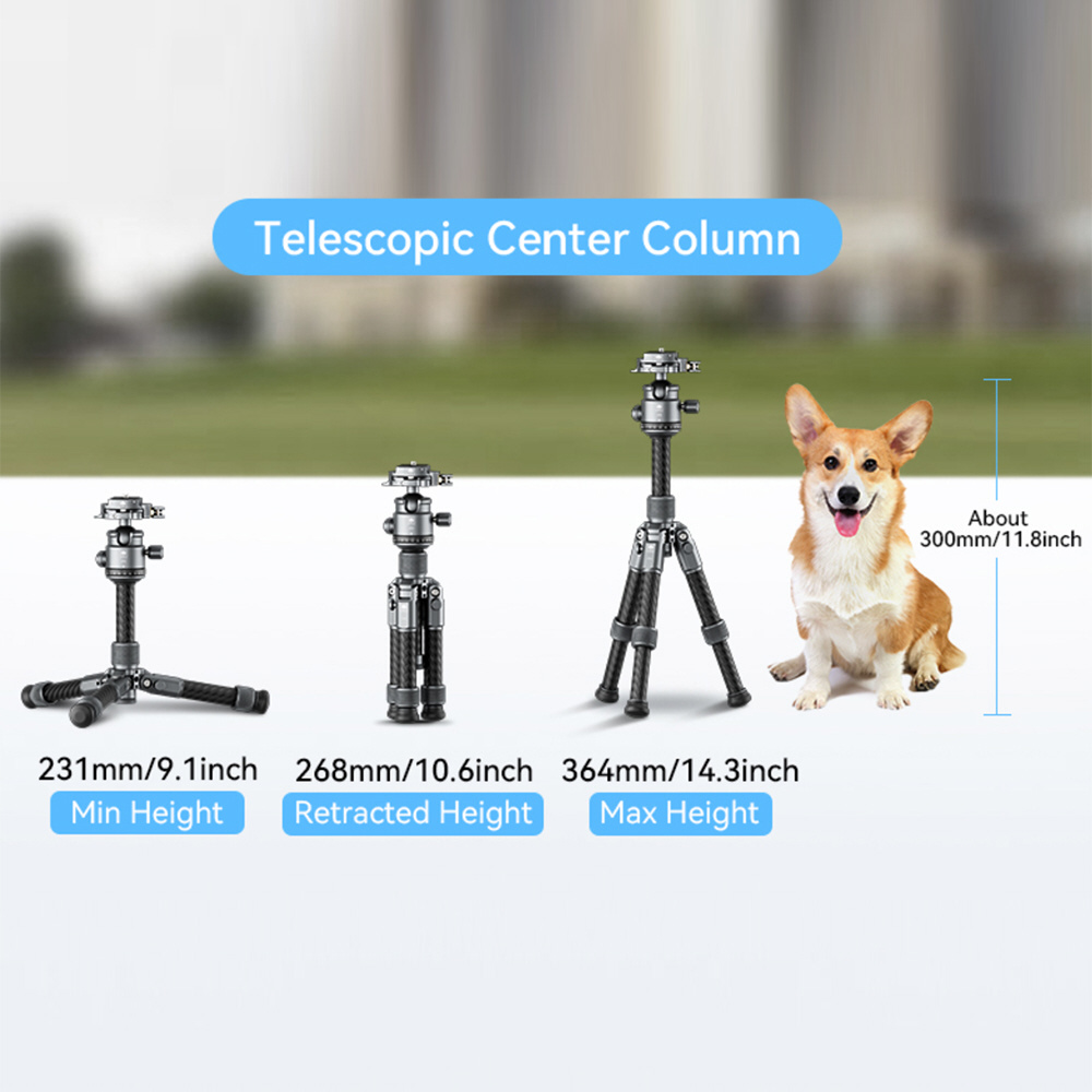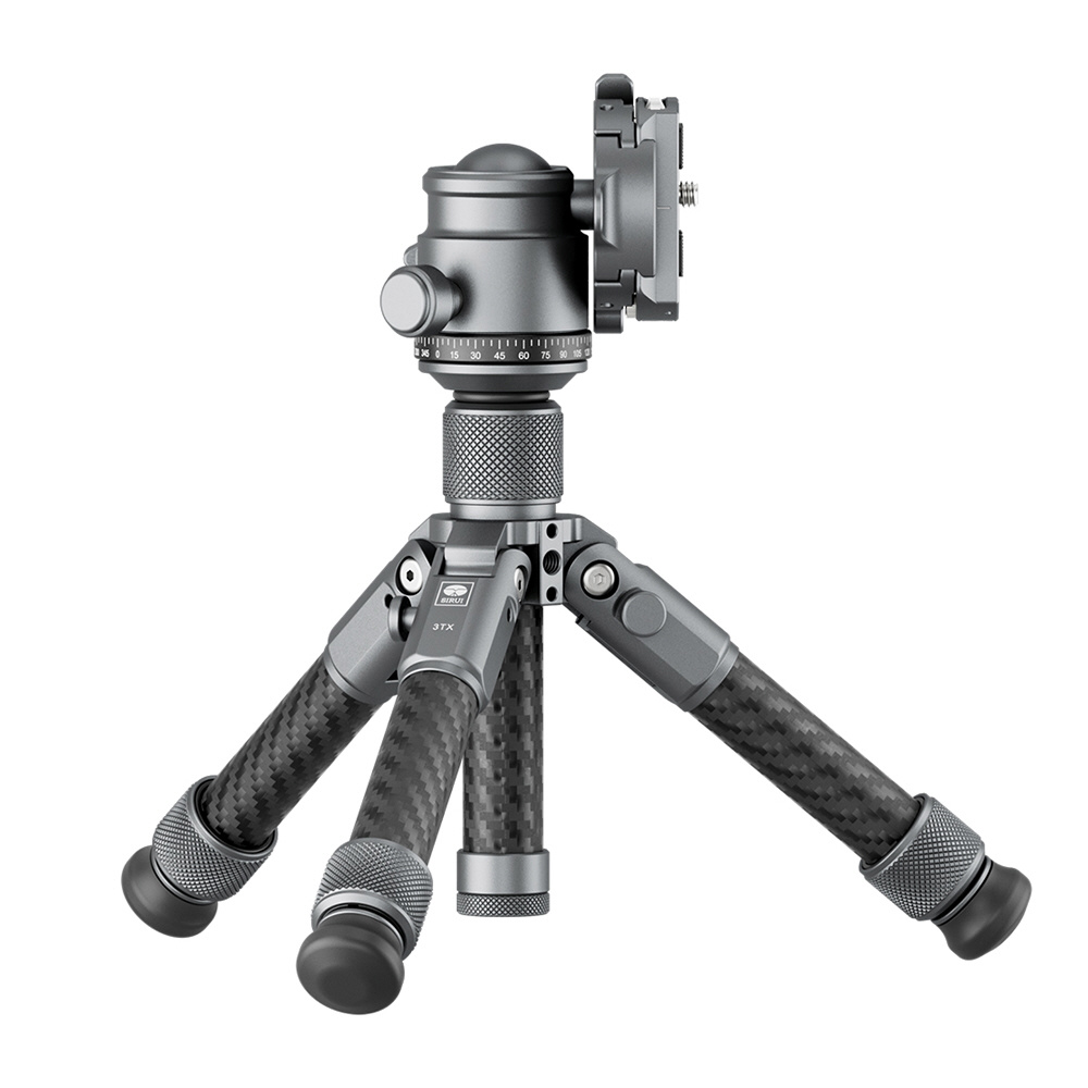 カーボンファイバー製テーブルトップ2段三脚セット ボール雲台(3T5)付属【最大高364mm/重量0.55kg】 センターポールにスマホホルダー内蔵