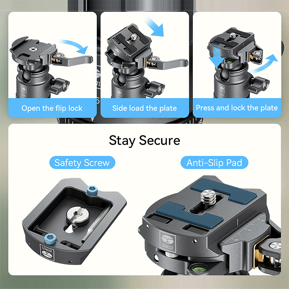 サイドローディング式クイックリリースプレートにより、機材の着脱もスムーズ。