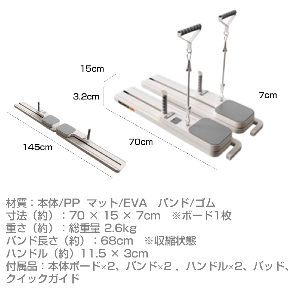 | 仕様2 | 付属品:本体ボード×2、バンド×2、ハンドル×2、パッド、クイックガイド |
