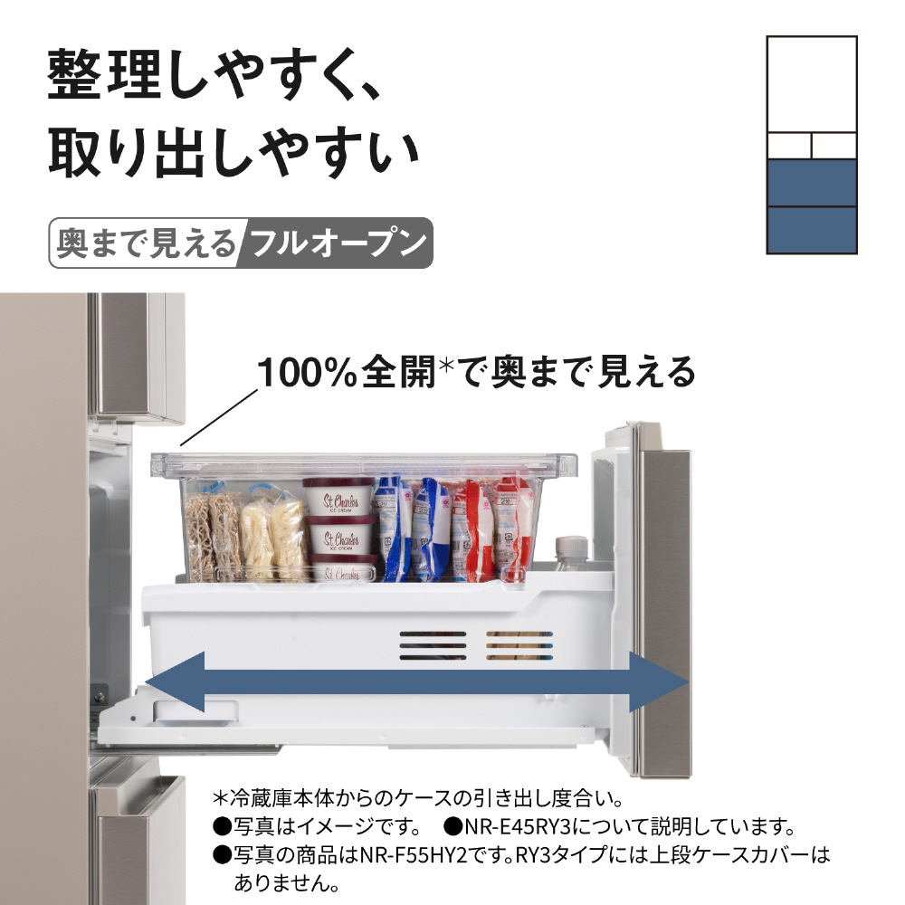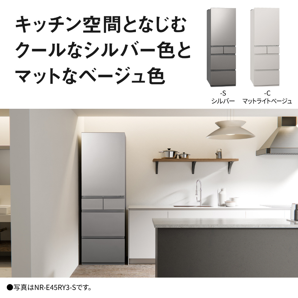 | 商品名 | 冷蔵庫 RYタイプ マットライトベージュ NR-E45RY3L-C [60cm /450L /5ドア /左開きタイプ] 【基本設置料金セット】 |