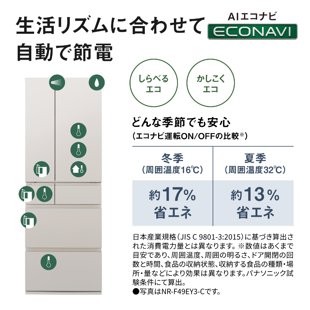 商品名 冷蔵庫 EYタイプ マットライトベージュ NR-F49EY3-C [65 /490L /6ドア /観音開きタイプ] 【基本設置料金セット】
