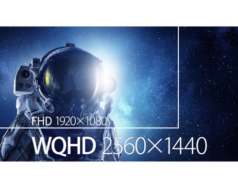 27インチのIPSパネルを搭載し、WQHD(2560x1440)解像度に対応した液晶モニターです。フルHD(1920x1080)より+78%も高精細でデスクワーク使用時には画面を広く、また写真や動画視聴の際はさらに美しく表示します。