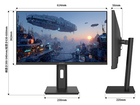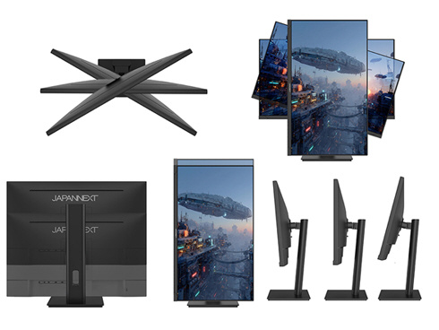 ■高さ調整が可能な昇降式多機能スタンドを搭載、最大150mmの範囲(横置時)で最適な高さに画面を調整可能です。また、縦画面として使用出来るピボット(回転)機能にも対応します。スイーベル(首振り)機能は、左右各30°の範囲で動かせます。
