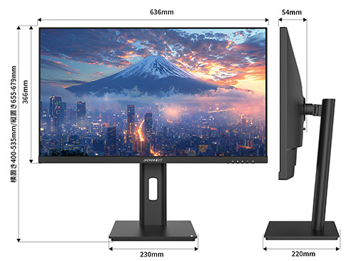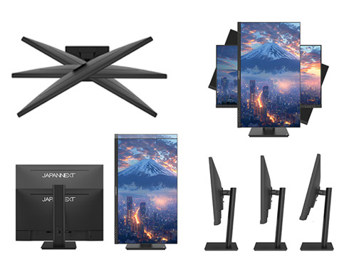 ■高さ調整が可能な昇降式多機能スタンドを搭載、最大135mmの範囲(横置時)で最適な高さに画面を調整可能です。また、縦画面として使用出来るピボット(回転)機能にも対応します。スイーベル(首振り)機能は、左右各30°の範囲で動かせます。