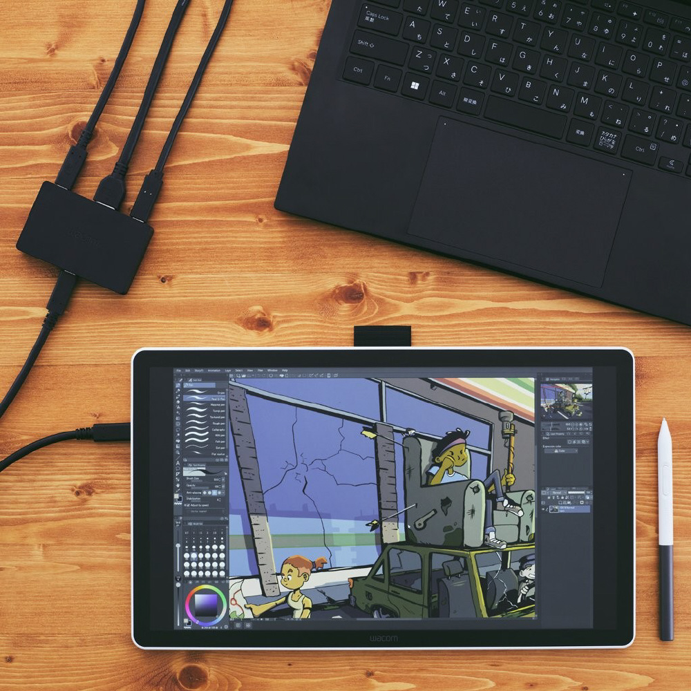 ・Wacom One 14をHDMI、USB-A、電源接続できる変換アダプタ。