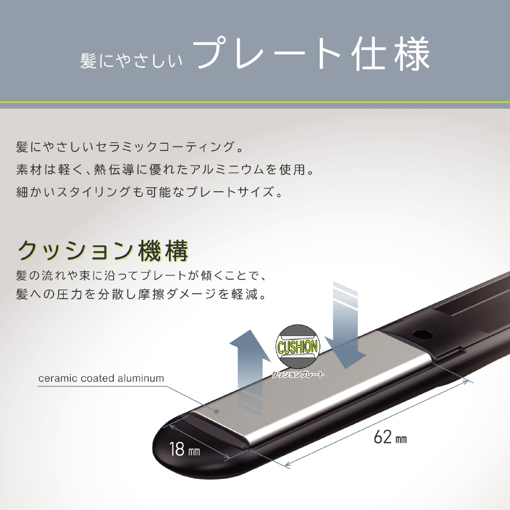 ■クッションプレートが髪への圧力を分散し、摩擦ダメージを軽減。
