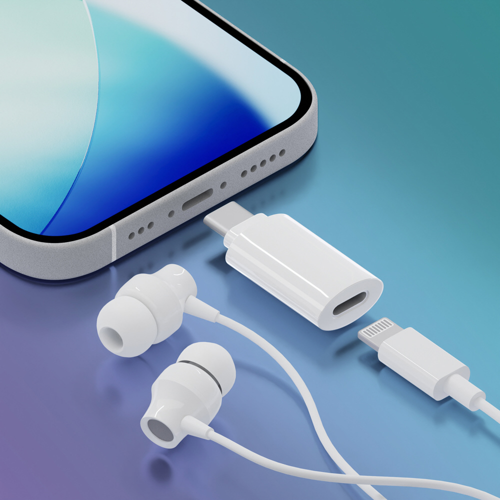 お手持ちのLightningコネクタのイヤホンをUSB Type-Cに変換してご使用頂けます。