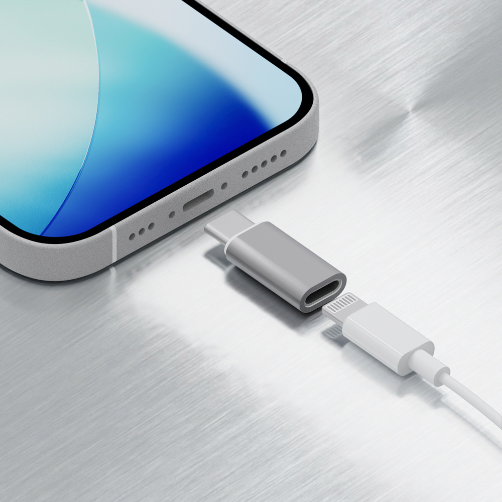 高耐久のアルミ素材を使用したLightningをUSB Typ-Cに変換し、充電・データ通信に対応したアダプタ