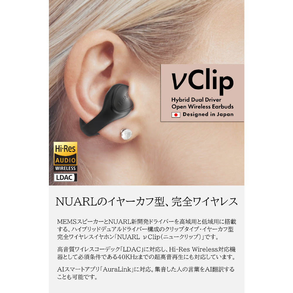 AIライブ翻訳サービス「AuraLink」にも対応するハイブリッドドライバー搭載のクリップタイプ・イヤーカフ型完全ワイヤレスイヤホン「NUARL νClip(ニュークリップ)」