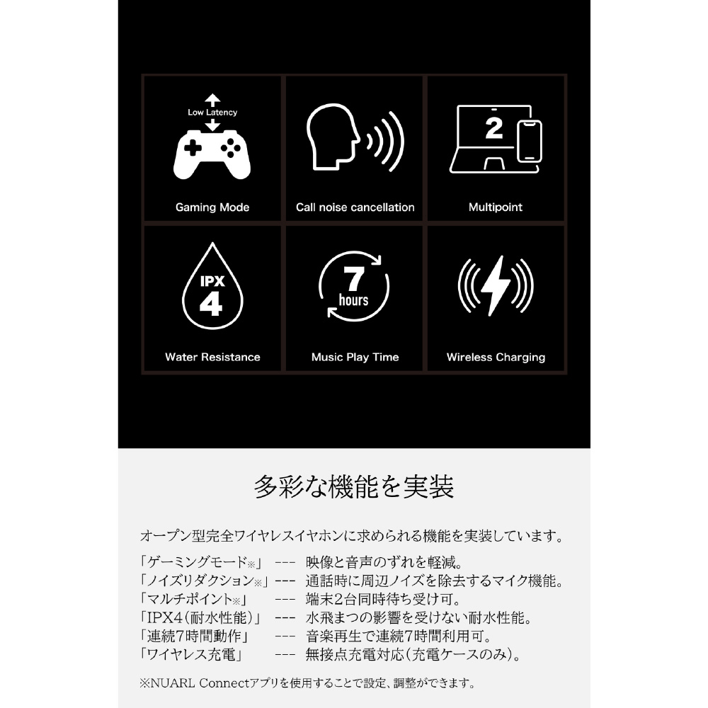 iOS/Android端末用アプリ「NUARL Connect」を使用するとトーンコントロール、左右バランスの調整やイヤホン操作などの設定変更、ボイスブーストやマルチポイントなど機能切り替えが可能です。