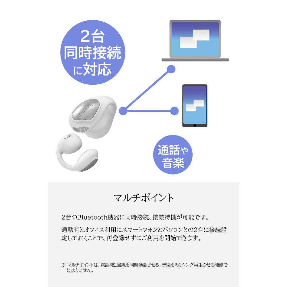NUARL Connectアプリによる設定により、同時2台待ち受けが可能な「マルチポイント」接続に対応