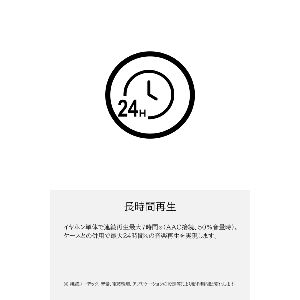 高音質ワイヤレスコーデックの「LDAC」に対応。対応端末を使用することでより高音質なサウンドが楽しめます。Hi-Res Wireless対応機器としての必須条件である40KHzまでの超高域再生にも対応しています。