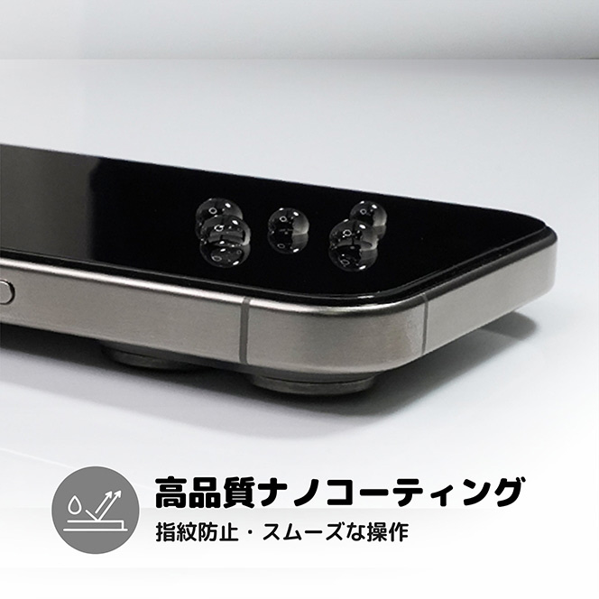 ナノコーティング加工により指紋や汚れが付きにくく、スムーズなタッチ操作が可能。Face IDや各種センサーにも完全対応。