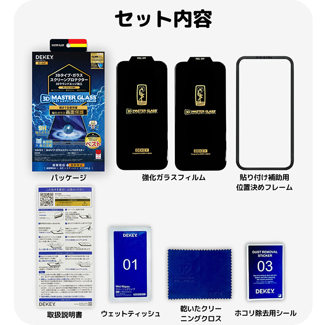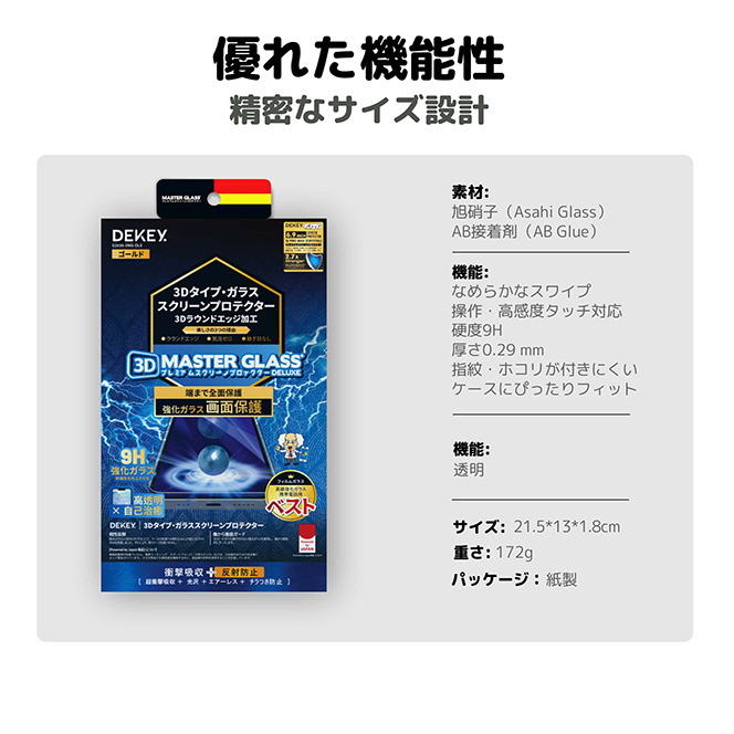 | 商品名 | iPhone 17/16 Pro MASTER GLASS 3D全面光沢 DELUXE クリア G2636-3MG-DLX17 |
