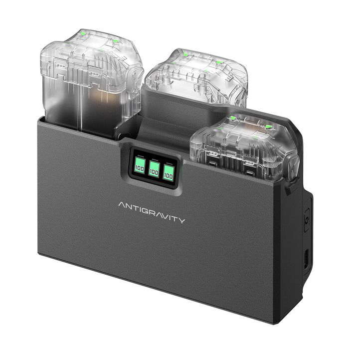 Antigravity A1 フライトバッテリー(標準) 1本を約45分で、3本を約135分でフル充電可能。USB-C経由でPDおよびPPSプロトコルに対応。