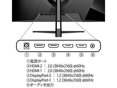 ■インターフェイスは、HDMI2.0 x2 (60Hz)、DisplayPort1.2 x2 (60Hz)を装備し、様々な機器との接続が可能です。