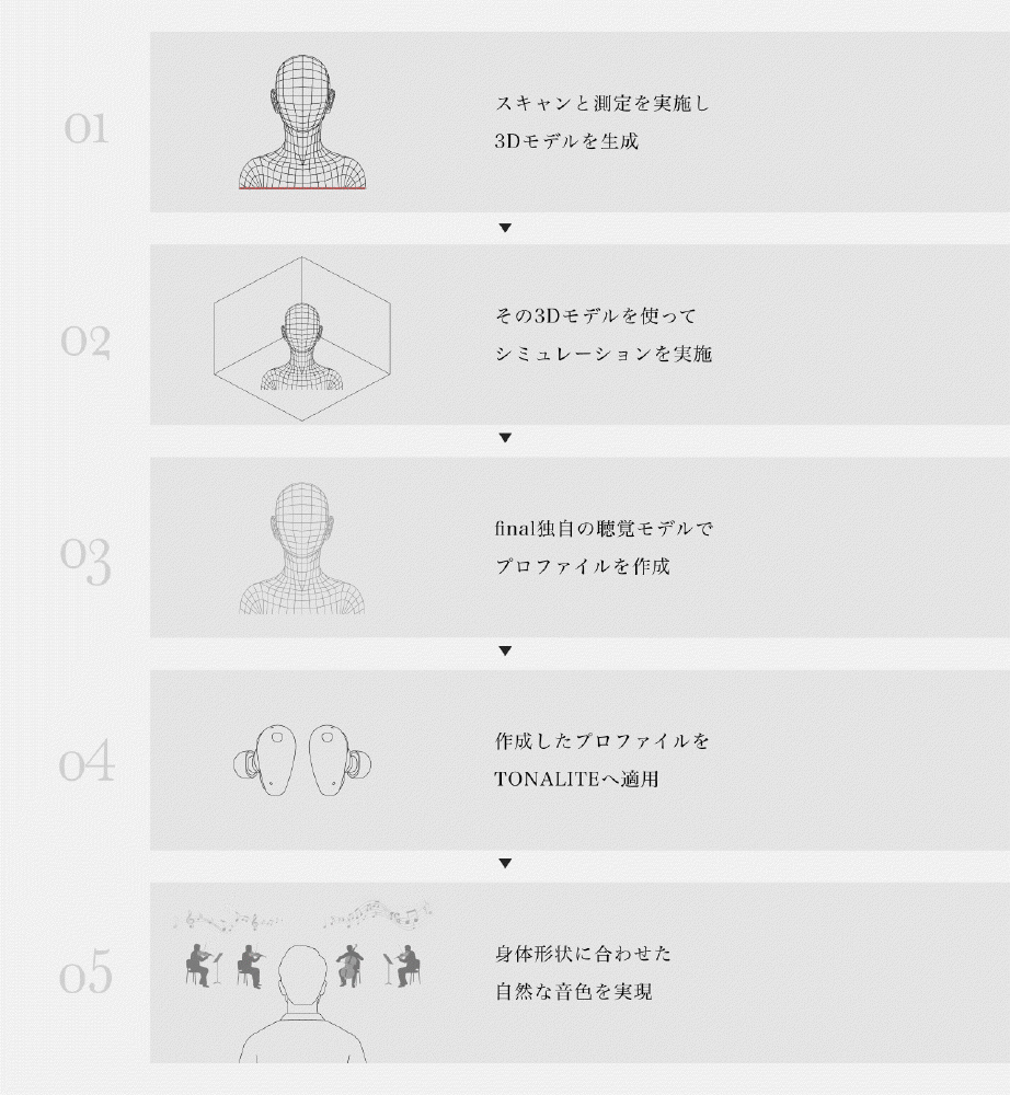 さらに、世界初*2のパーソナライズ技術「DTAS」を採用。アプリで身体をスキャンし、個人の身体形状に合わせた音を作成することで、超高音質な再生音をダイレクトに体感することが可能になりました。