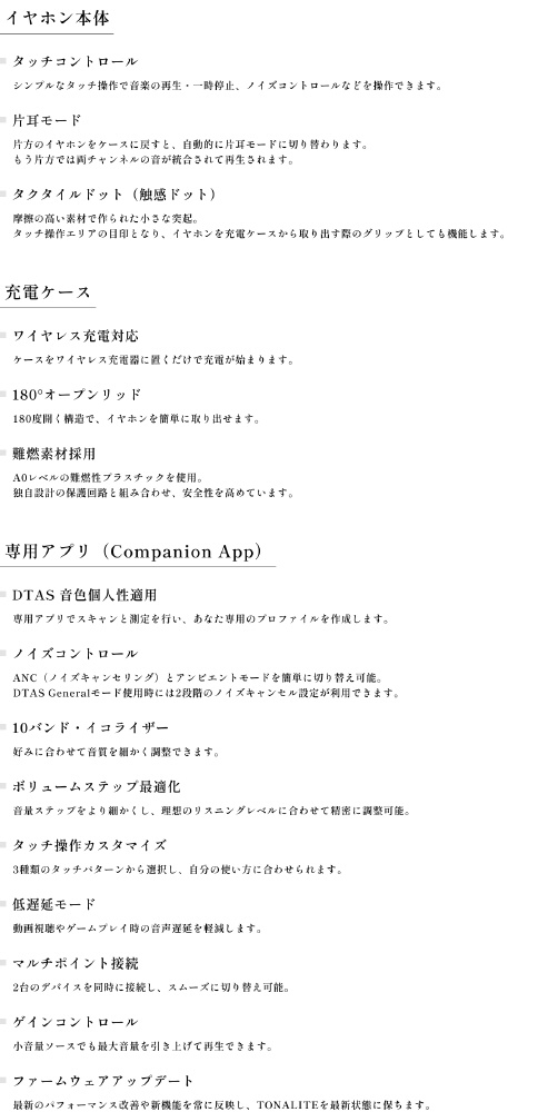| 商品名 | フルワイヤレスイヤホン TONALITE |