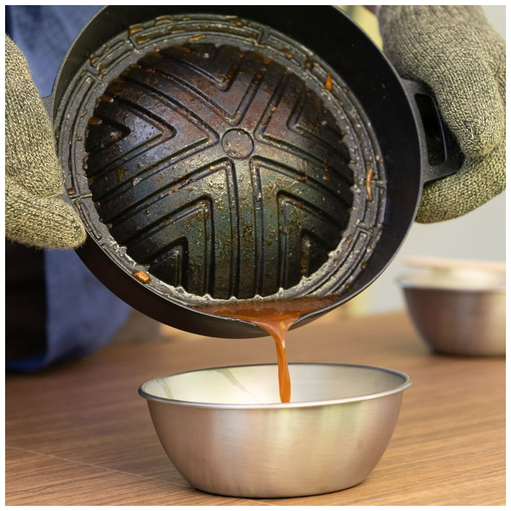 余分な油が流せる注ぎ口付き。