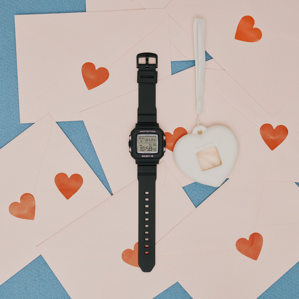 自分の好みに合わせて使い方が楽しめる「BABY-G+PLUS」シリーズから、ハート型の時計ホルダーを採用したポップなモデルです。