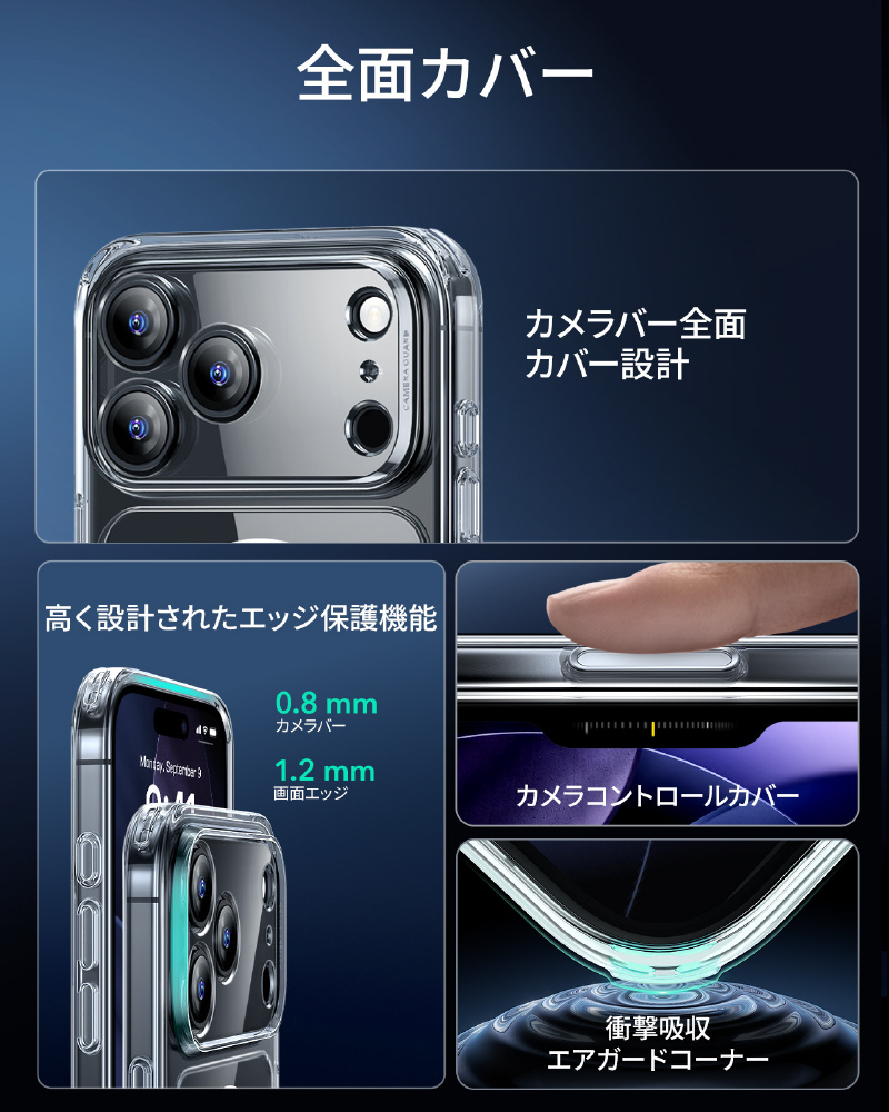 商品名 iPhone 17 Pro (6.3インチ)MagSafe対応、ミリタリーグレードハードケース+ガラスフィルムセット 1A89100101-Clear