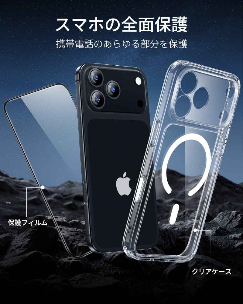 iPhone 17 Pro (6.3インチ)MagSafe対応、ミリタリーグレードハードケース+ガラスフィルムセット 1A89100101-Clear
