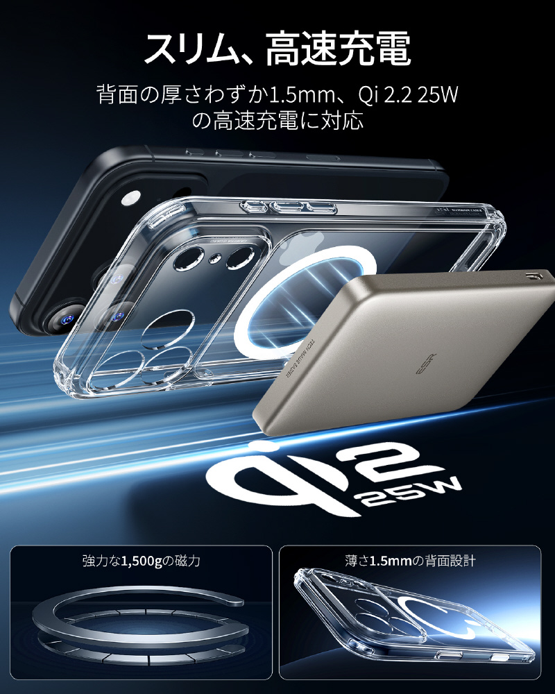 業界トップクラスの強力磁力(1500gの保持力)を内蔵した iPhoneケースです!MagSafeワイヤレス充電器