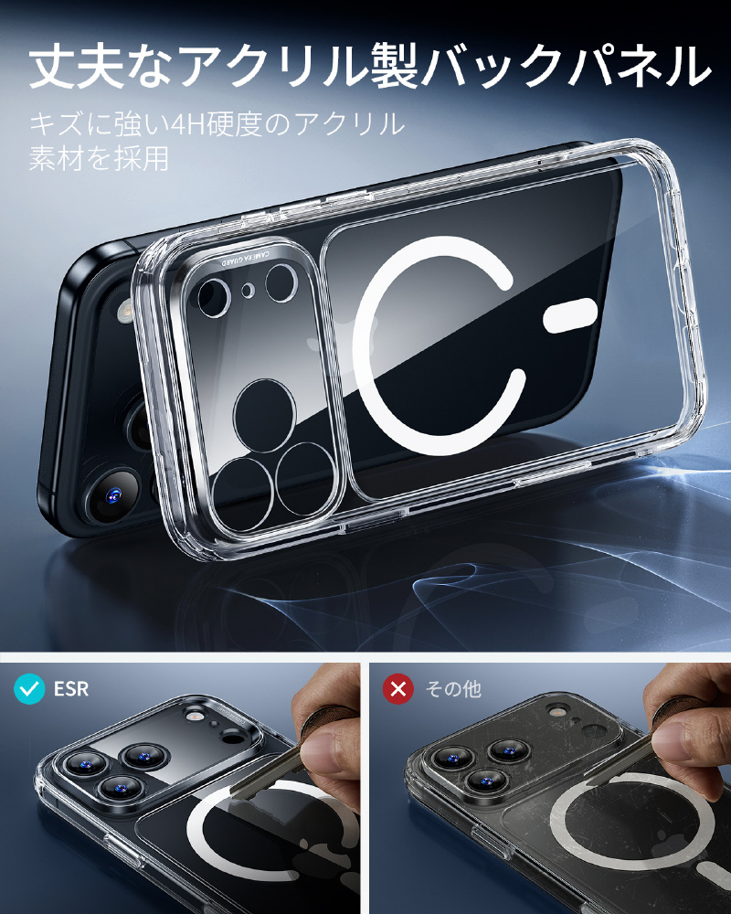 高純度アクリル素材が、iPhoneの洗練されたデザインラインとカラーを完璧に映し出すクリアさを実現します。さらに嬉しい「透明」の魅力として、ケース背面と本体の間にオリジナルの写真やメモ、お気に入りのシールを挟めるデザインに、思い出やこだわりのアイテムを透かして見せれば、世界でひとつだけのマイデザインに早変わります! 季節や気分で中身を入れ替えるだけで、手軽にオリジナリティを表現できます。軽量設計としっとりなめらかな手触りが、カスタマイズの楽しみと日常の使いやすさを両立させます