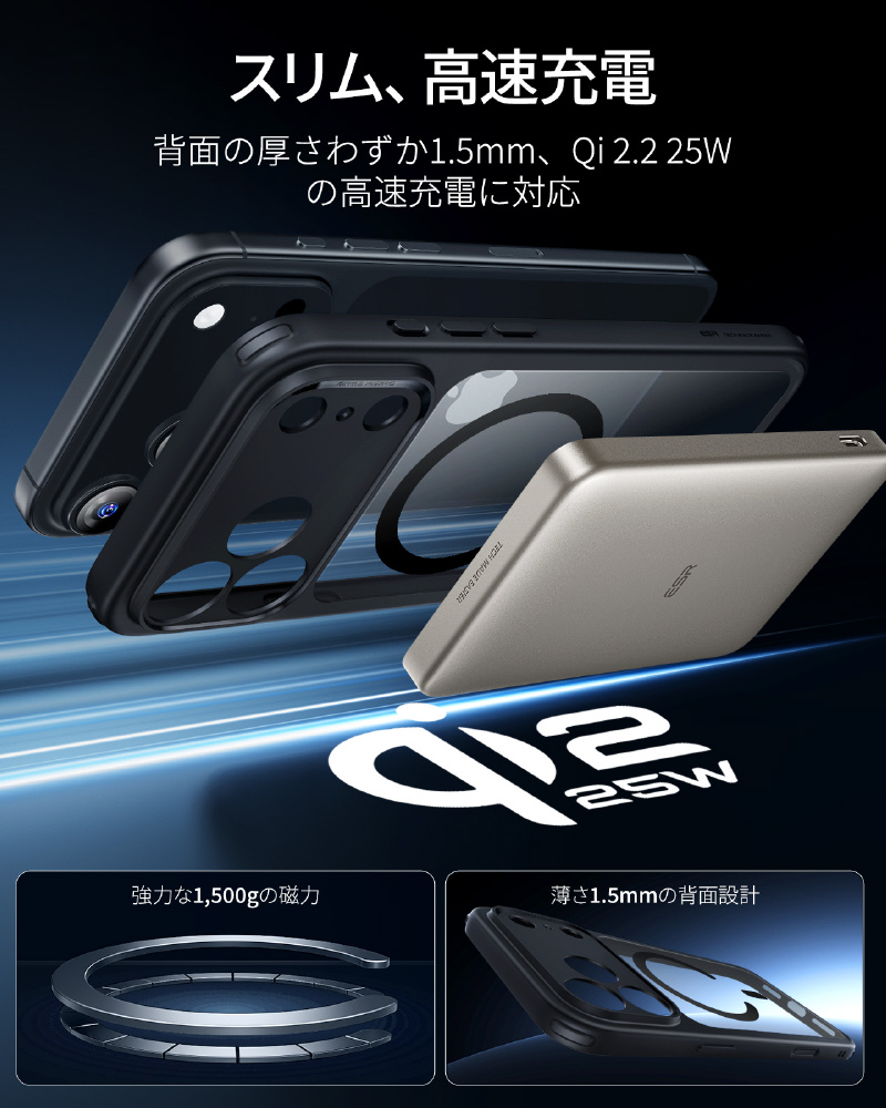 業界トップクラスの強力磁力(1500gの保持力)を内蔵した iPhoneケースです!MagSafeワイヤレス充電器