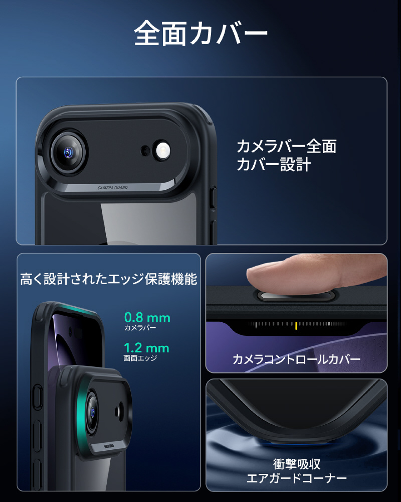革新的なカメラコントロールボタンを専用カバーで守りながら、指先に伝わるプロ級の操作感をそのまま体感できます。スライド時の滑らかな動きから押圧時の確かな反発感まで、本体と遜色ない精密なタッチレスポンスを実現します。ボタン周辺の隙間を完全に封鎖する設計で、ほこり侵入を徹底シャットアウトします。精密センサーを埃のストレスから守り、シャッターチャンスを逃さない快適操作を長く支えます