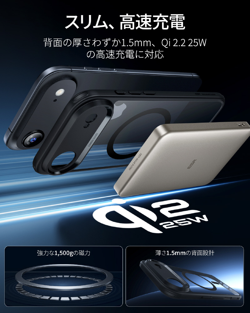 やアクセサリーが瞬時に「ピタッ」と吸着するため、満員電車や急いでいる時でも位置調整の手間が不要です。充電中のずれ落ちやアクセサリーの外れが心配ない設計で、移動中やアウトドアでの利便性が格段に向上します