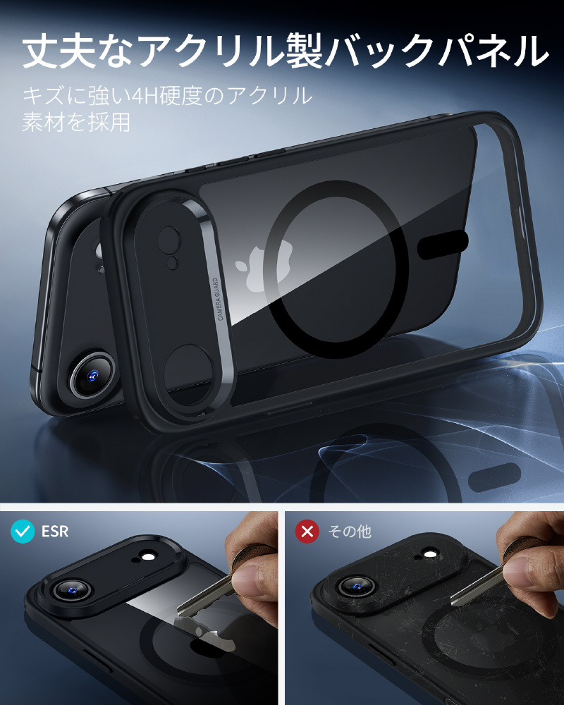 高純度アクリル素材が、iPhoneの洗練されたデザインラインとカラーを完璧に映し出すクリアさを実現します。さらに嬉しい「透明」の魅力として、ケース背面と本体の間にオリジナルの写真やメモ、お気に入りのシールを挟めるデザインに、思い出やこだわりのアイテムを透かして見せれば、世界でひとつだけのマイデザインに早変わります! 季節や気分で中身を入れ替えるだけで、手軽にオリジナリティを表現できます。軽量設計としっとりなめらかな手触りが、カスタマイズの楽しみと日常の使いやすさを両立させます