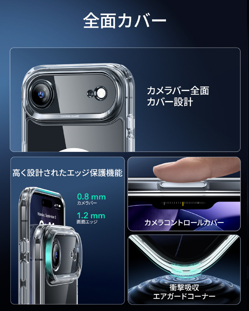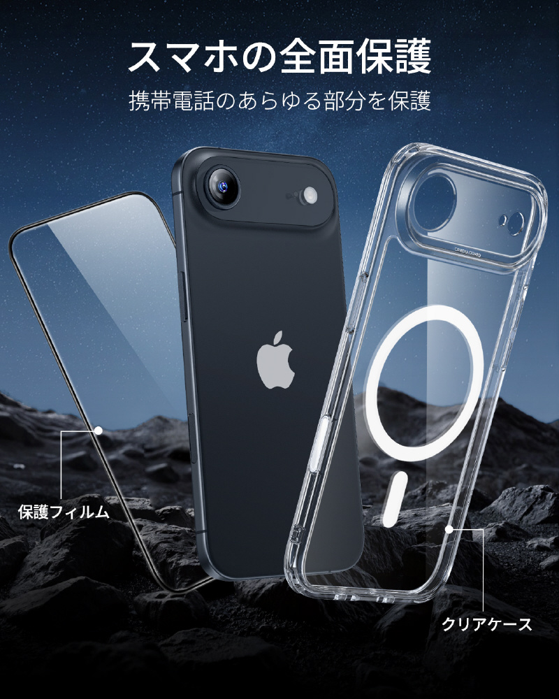 | 商品名 | iPhone Air (6.5インチ)MagSafe対応、ミリタリーグレードハードケース+ガラスフィルムセット クリア 1A89000101-Clear |