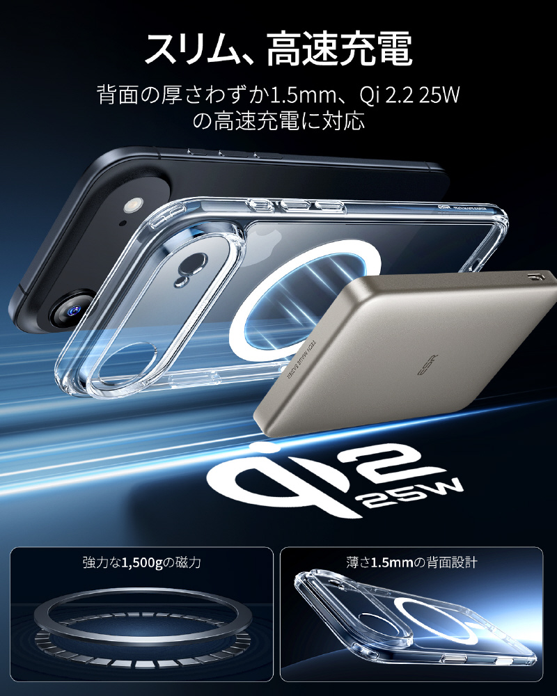 業界トップクラスの強力磁力(1500gの保持力)を内蔵した iPhoneケースです!MagSafeワイヤレス充電器