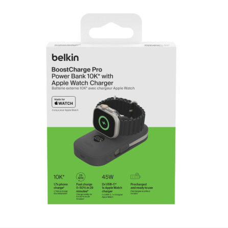 BoostCharge 45W Apple Watch対応バッテリー10000mAh (ケーブル一体型) BPD012fqBK