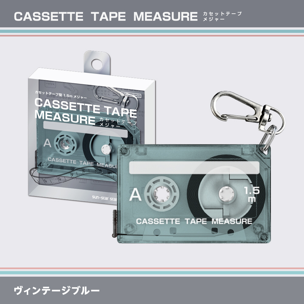 機能性に携帯性とファッション性を融合。、「カセットテープメジャー」。柄は、カセットテープメジャー。デザインは、ヴィンテージブルー。